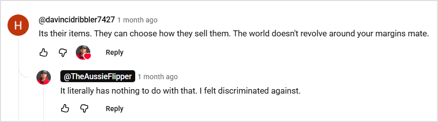 Matt claimed in the comment section that he felt the thrift shop discriminated against him.